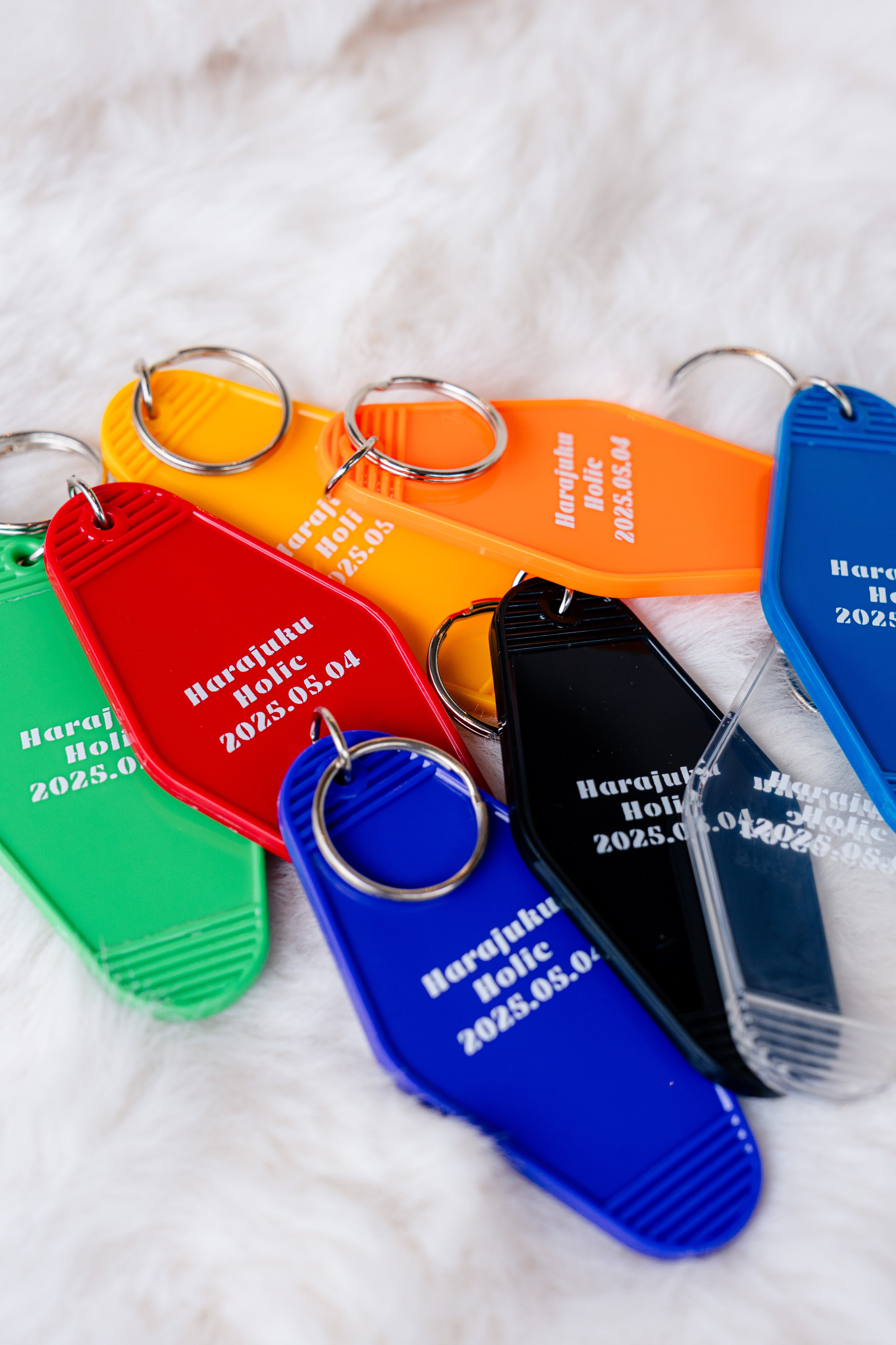 メンカラなどの好きなカラーと入れたい文字(名前や誕生日などの数字)をご指定いただければオリジナルのモーテルキーホルダーが完成!